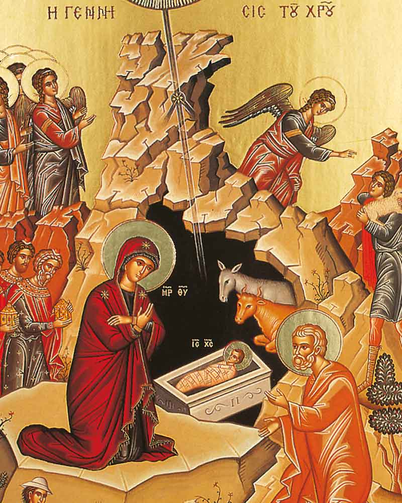 Ikone 10 x 14 cm aus Holz Golddruck Christi Geburt