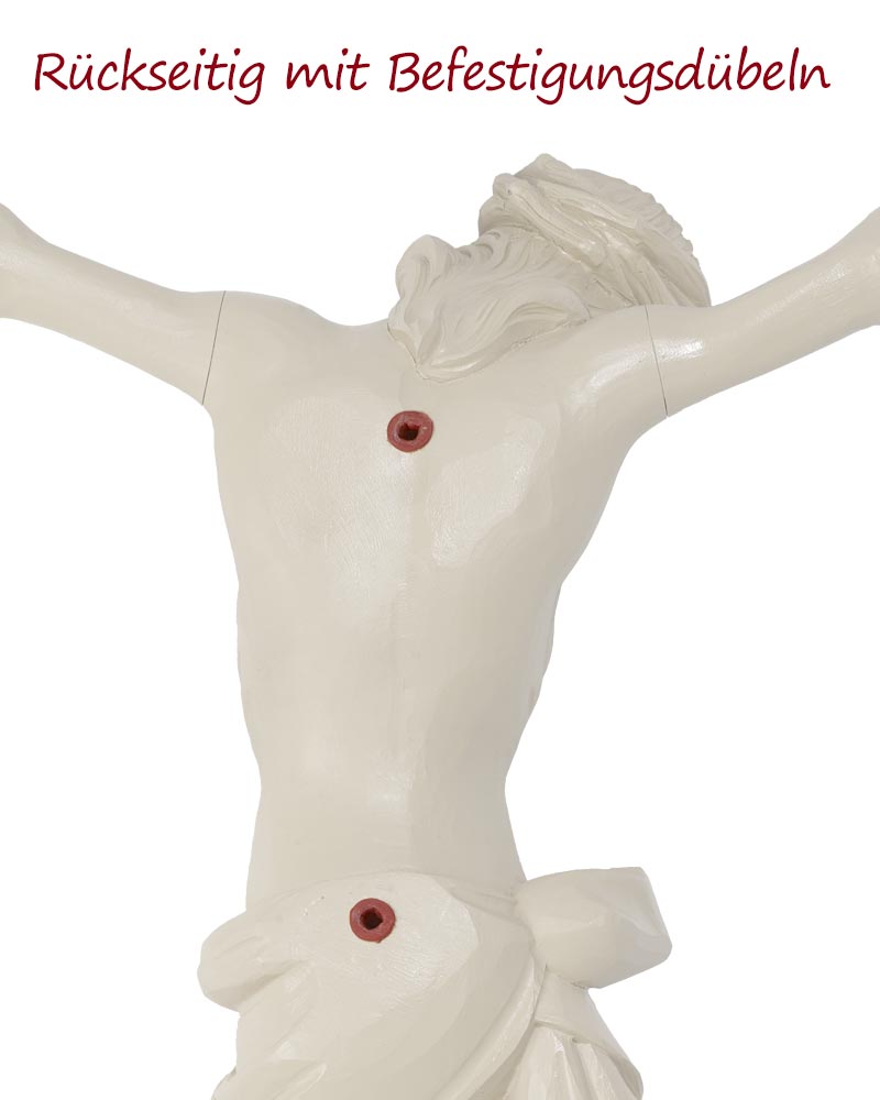 Der Christus-Korpus aus Fiberglas naturbelassen mit einer Höhe von 120 cm eignet sich für Kreuze und Wandkreuze im Innenbereich. Gefertigt aus stabilem Fiberglas überzeugt der Corpus durch sein geringes Gewicht und seine robuste Verarbeitung. Die naturbelassene Ausführung zeigt den originalen Materialton des Fiberglases ohne zusätzliche Farbbeschichtung und sorgt für eine schlichte, gleichmäßige Optik. Geliefert wird der Christuskorpus inklusive INRI-Schild.