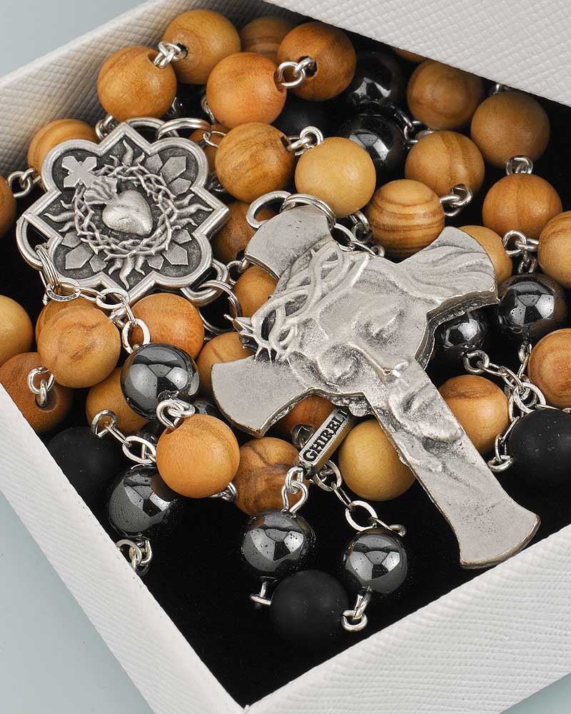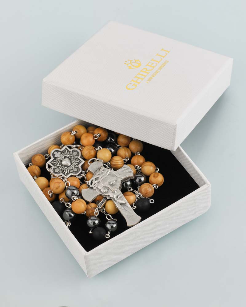 Rosenkranz Olivenholz- und Hämatitperlen 8 mm Ø