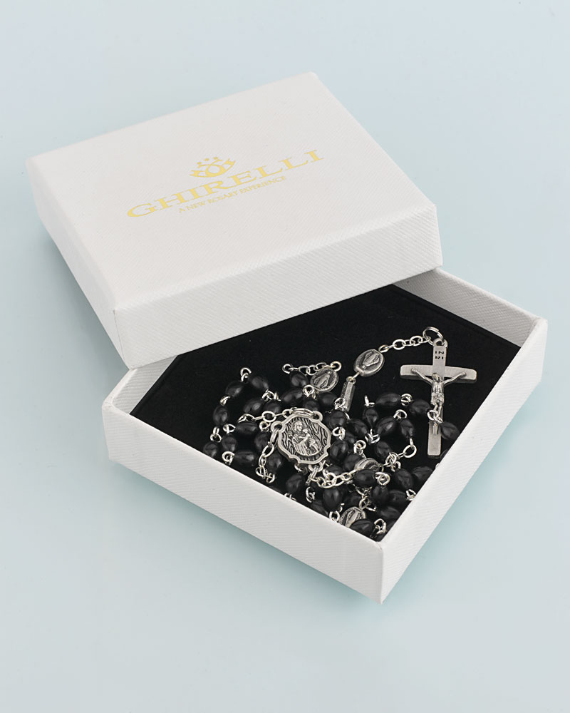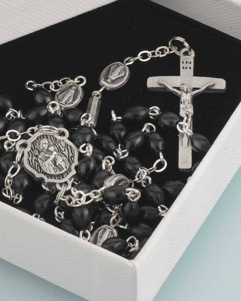 Rosenkranz Hl. Josef schwarze Holzperlen 56 cm lang