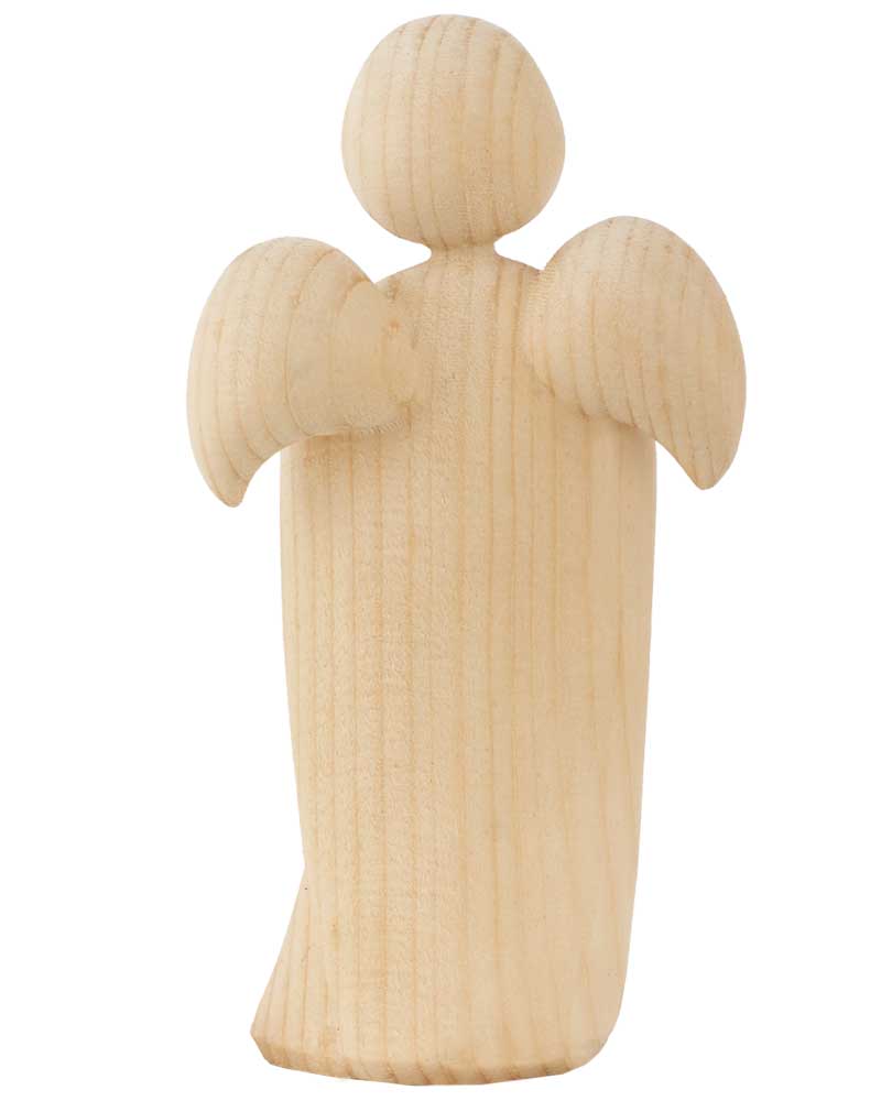 Ein Schutzengel zum Aufstellen aus naturbelassenem Zirbenholz, Größe 9 cm x 5 cm. Natürliche Maserung und dezenter Duft nach Zirbenholz, welchem man auf seelischer Ebene die Wirkung von Kraft und Halt zuschreibt.