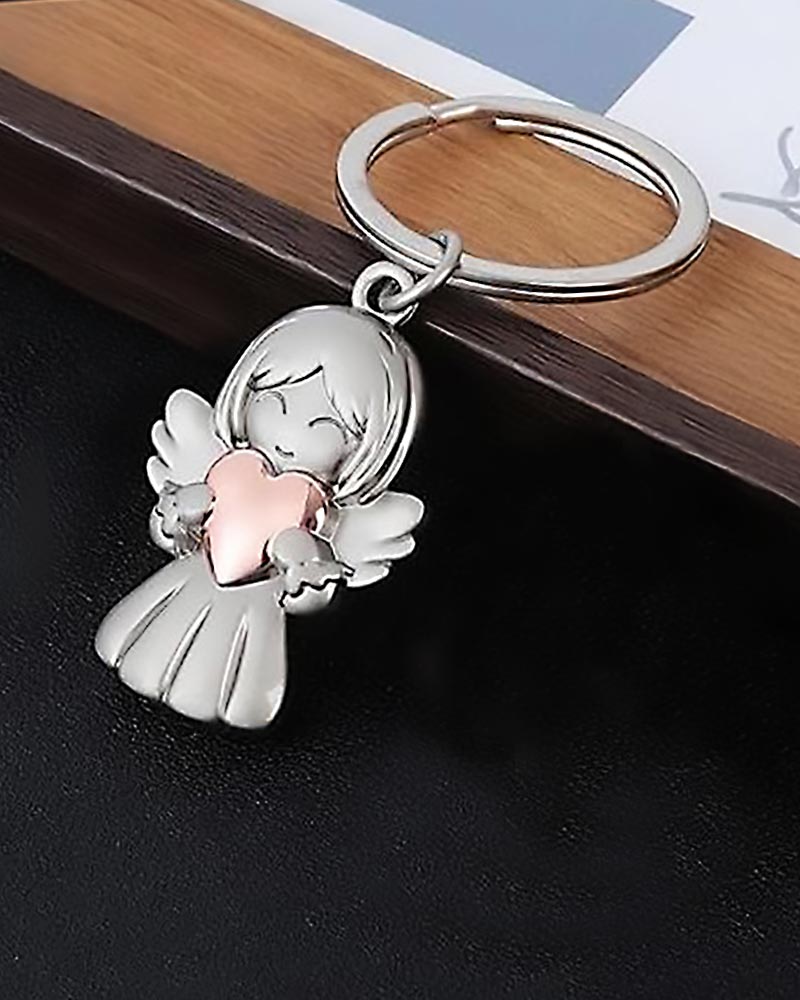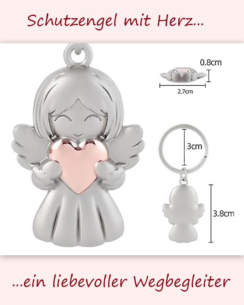 Dieser Schlüsselanhänger zeigt einen stilisierten Engel mit Herzmotiv und misst 3,8 × 2,7 cm. Gefertigt aus robustem Metall mit matter Oberfläche, eignet er sich als christlicher Schmuck für unterwegs. Die symbolische Darstellung eines schützenden Engels mit Herz steht für Begleitung und Fürsorge im Alltag. Der stabile Schlüsselring sorgt für sicheren Halt an Schlüsselbund oder Tasche. Ein dezentes, funktionales Accessoire – auch als christliches Geschenk geeignet.