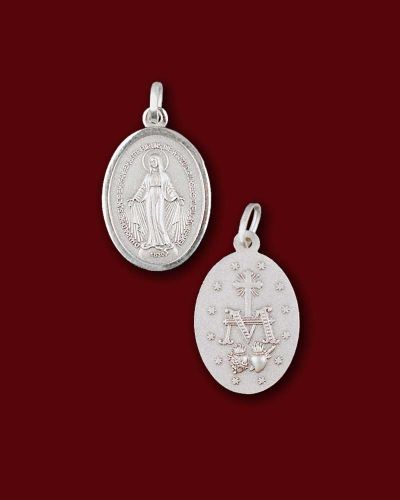 Die Wunderbare Medaille aus rhodiniertem Silber 925, 14 mm hoch, mit Aufhängeöse für Schmuckketten. Durch die oxydierte Oberfläche ist die detailreiche Ausarbeitung, gefertigt nach der genauen Vorgabe durch die Marienerscheinung, schön zu sehen. Hochwertige Verarbeitung in deutschen Werkstätten, mit der Inschrift. "O Maria, ohne Sünde empfangen, bitte für uns, die wir zu dir unsere Zuflucht nehmen".