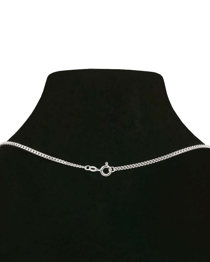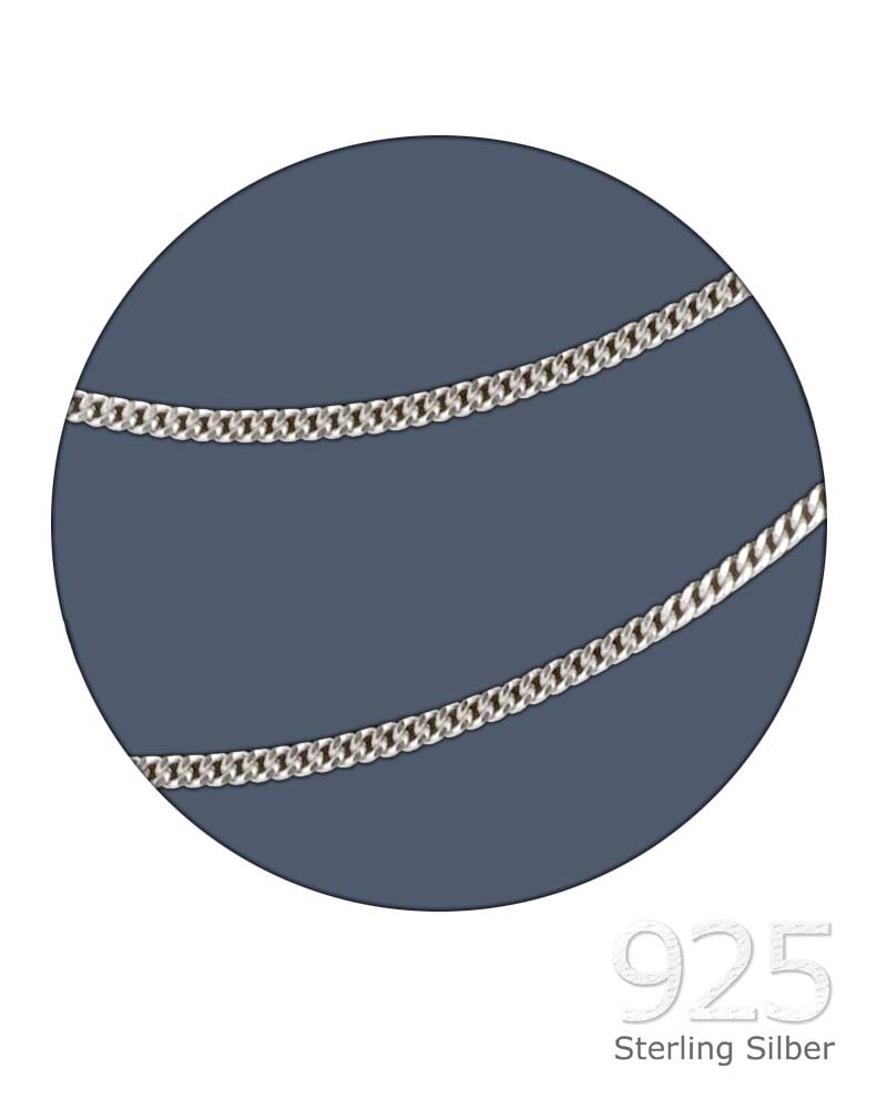 Diese silberne Kette wurde mit einer dünnen Schicht aus Rhodium überzogen. Die Rhodinierung ist ein chemischer Vorgang, der in einem galvanischen Bad mit Hilfe von elektrischem Strom erfolgt. Rhodium ist ein Schwestermetall von Platin. Der Glanz ist härter und der Silberton etwas bläulicher als bei Silber. Da Rhodium an der Oberfläche nicht oxydiert, erhält die Medaille einen wirkungsvollen Anlaufschutz. Rhodium ist äußerst widerstandsfähig und hart, daher verleiht es den Medaillen zusätzliche Stabilität.