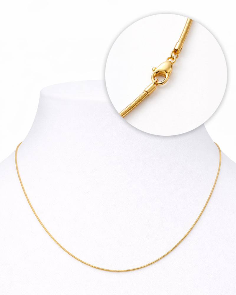 Schlangenkette aus Silber vergoldet, Länge 45 cm, mit Karabinerverschluss. Die feingliedrige Kette eignet sich für Anhänger, Medaillen oder Kreuze und wird häufig als christlicher Schmuck getragen. Gefertigt aus 925 Sterling Silber mit Vergoldung, bietet sie eine glatte Oberfläche und gleichmäßige Struktur. Die Länge von 45 cm liegt angenehm am Hals und passt zu liturgischer Kleidung sowie Alltagsgarderobe. Der stabile Karabiner sorgt für sicheres An- und Ablegen.