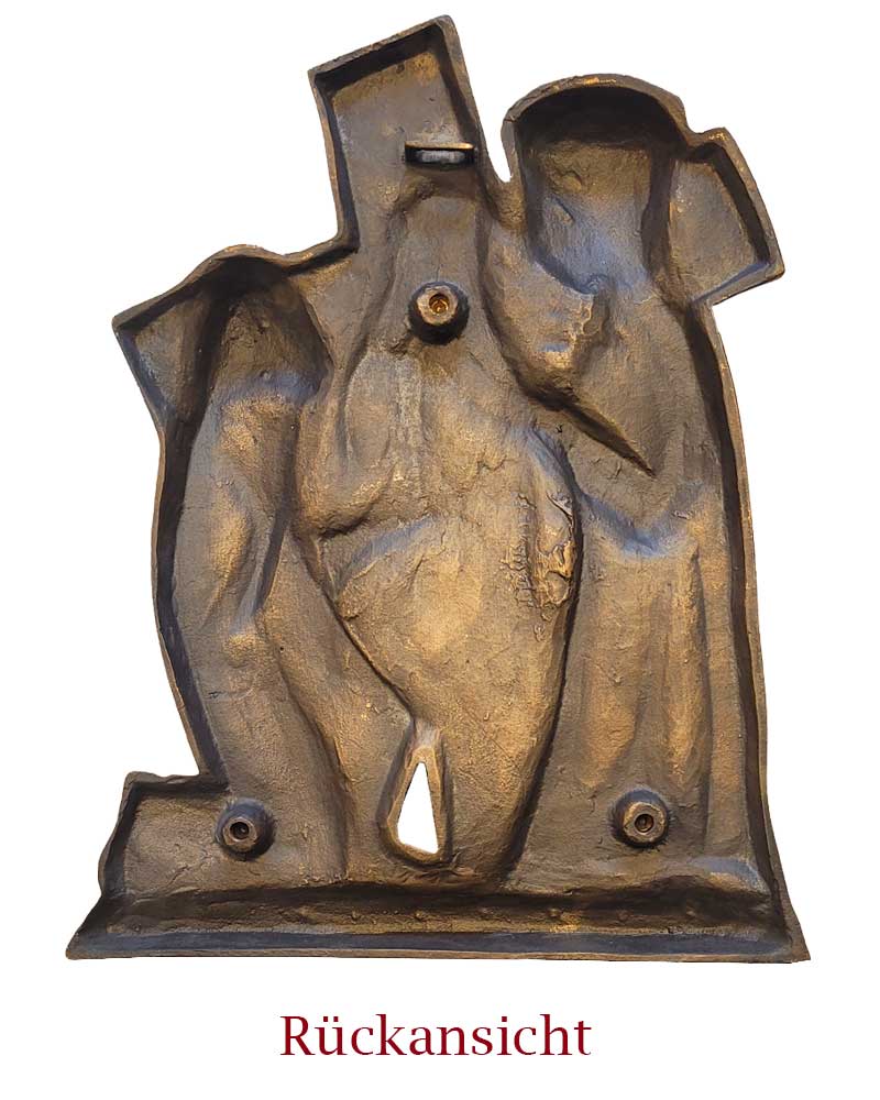 Diese Bronzeplakette Kreuzwegstation Veronika 24 x 33 cm zeigt Veronika, wie sie Jesus das Schweißtuch reicht – gemäß der 6. Station des Kreuzwegs. Die Tafel ist aus hochwertiger Bronze gefertigt, mit feiner Reliefstruktur, wetterfester Oberfläche und einem Gewicht von 2,5 kg. Maße: 24 cm Breite × 33 cm Höhe. Rückseitig mit Vorrichtung zur Aufhängung über Gewindeschrauben oder Haken. Lieferung inklusive Befestigungsmaterial. Das Motiv steht symbolisch für Mitgefühl und Demut im Leiden Christi.