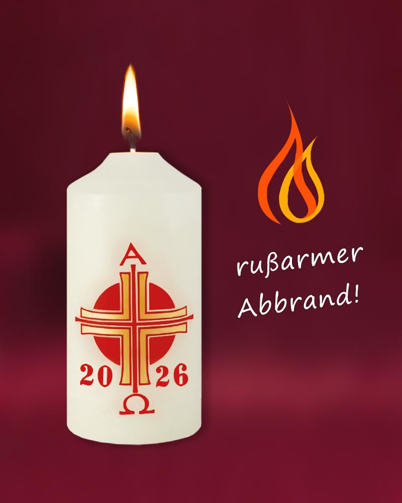 Osterkerze 120 x 50 mm A + O mit Jahreszahl, Kreuz