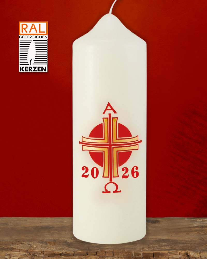 Osterkerze 180 x 60 mm A + O mit Jahreszahl