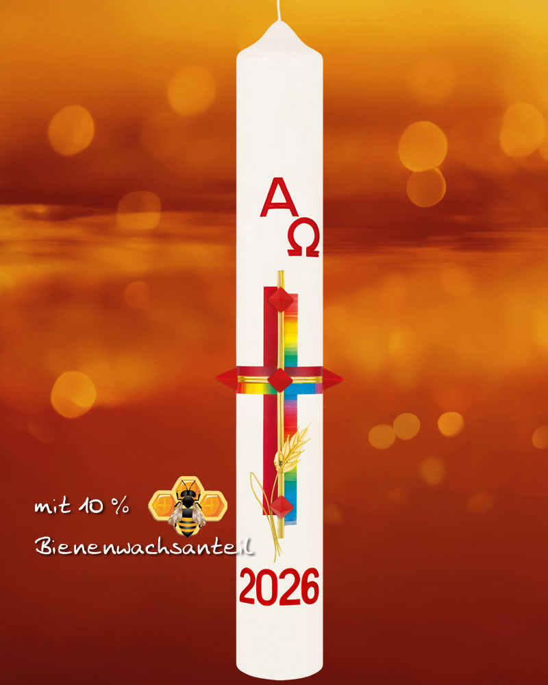 Osterkerze 600 x 80 mm Kreuz mit Ähren