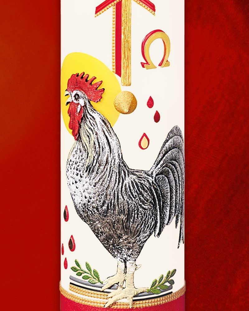 Osterkerze 800 x 80 mm Kreuz Erwachet mit Hahn