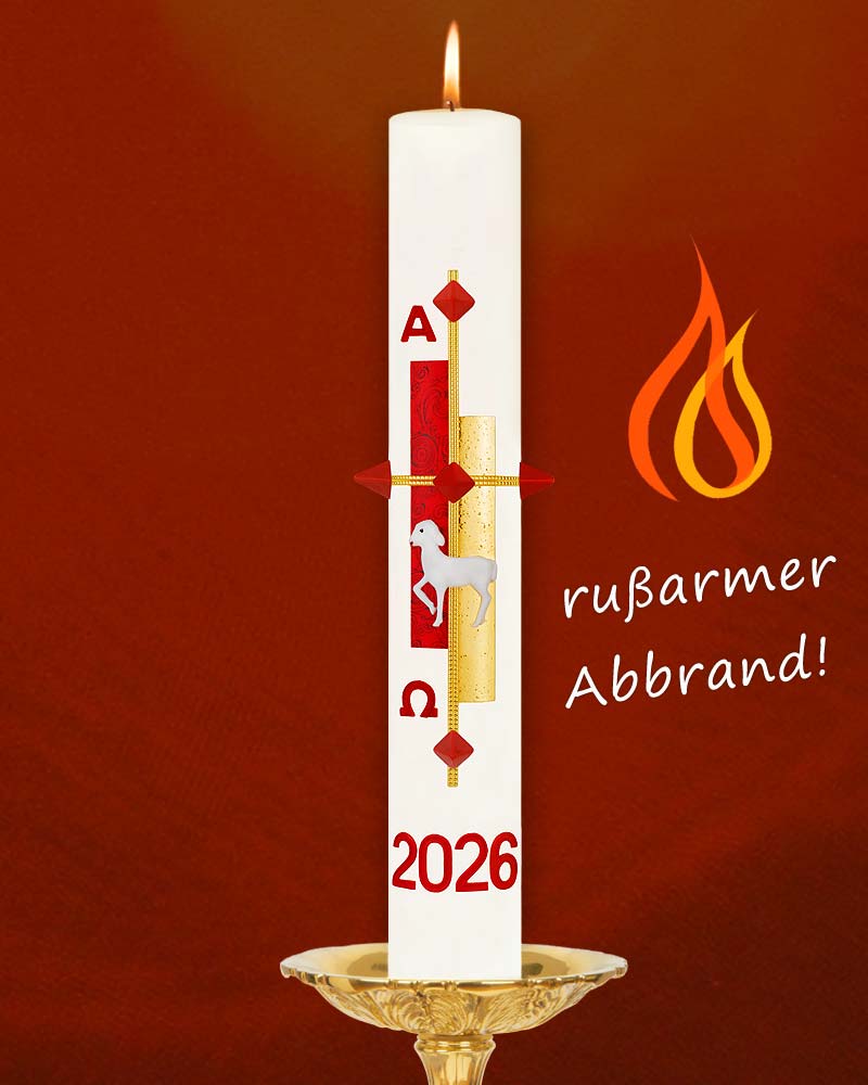Osterkerze "Gloria" rot & gold mit Lamm 600 x 80 mm