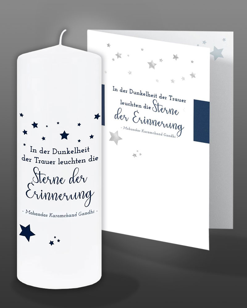 Trauerkerze "Sterne der Erinnerung" 8 x 20 cm m. Karte