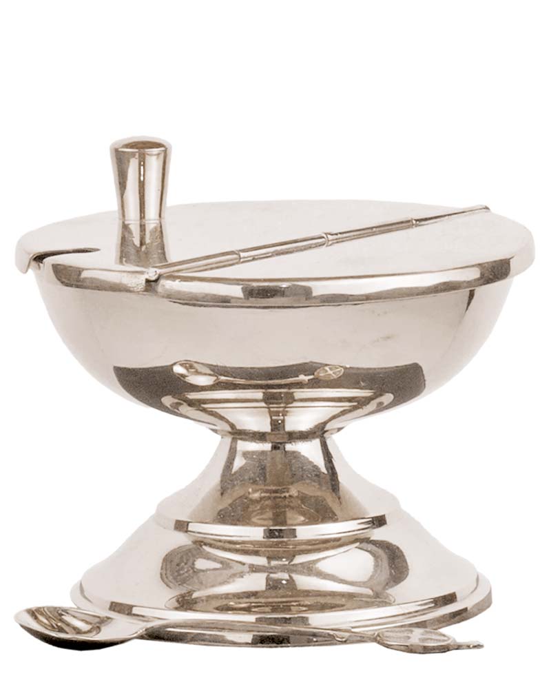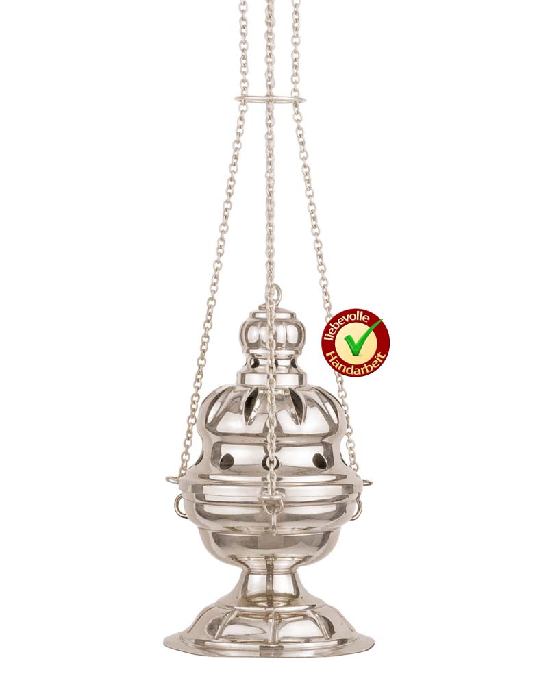 Rauchfaß Messing vernickelt 22 cm hoch, mit Schiffchen