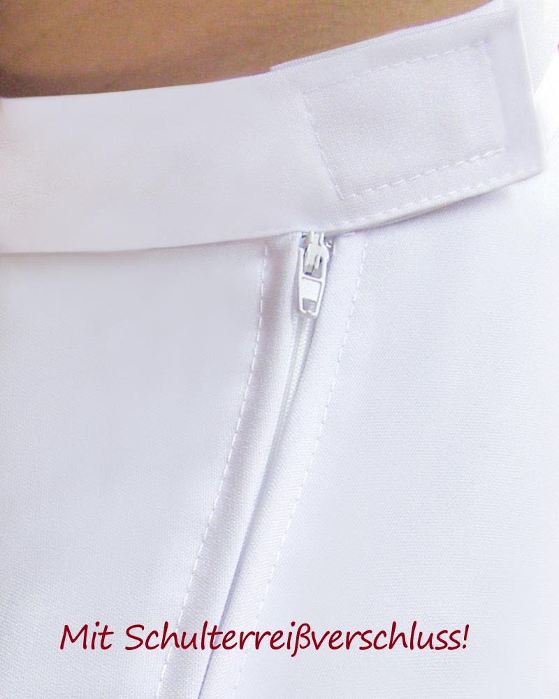 Diese schlichte Sternsinger-Albe in Weiß ist auf die Bedürfnisse von Kindern abgestimmt und überzeugt durch Funktionalität und Pflegeleichtigkeit. Der Schulterreißverschluss und der Stehkragen ermöglichen ein schnelles An- und Auskleiden, besonders praktisch bei häufigem Kleidungswechsel. Der weite Schnitt mit vier tiefen Falten sorgt für angenehme Bewegungsfreiheit. Das strapazierfähige, knitterarme Gewebe aus 100 % Polyester ist ideal für den mobilen Einsatz bei Hausbesuchen und Umzügen. Mit einer Länge von 105 cm passt die Albe für eine Körpergröße von 116–124 cm. Aufgrund ihres schlichten Designs ist sie auch als Erstkommunion-Albe einsetzbar.