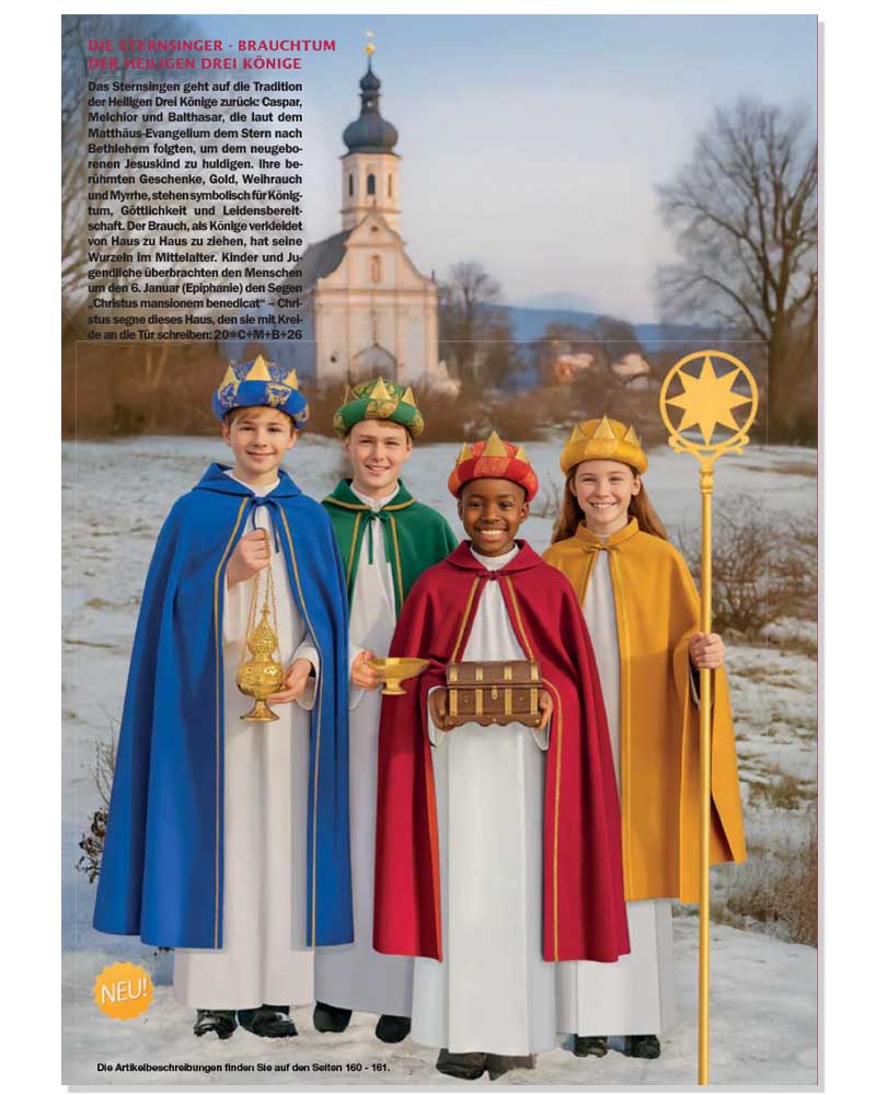 Freuen Sie sich mit uns auf die neue Kollektion von Kaseln, Stolen, Dalmatiken, Talare, Soutanen, Fahnen, Baldachine, Ministrantenbekleidung, Priesterkleidung und andere Paramente. Sakrale Gefäße z.B. Kelche, Hostienschalen, Monstranzen, Ostensorien, Custodien, Kirchenmöbel und weiteres Kirchenzubehör. Ein unentbehrliches Nachschlagewerk für Kunst und Kirche. Diesmal ist der gesamte Weihnachstkatalog mit integriert.