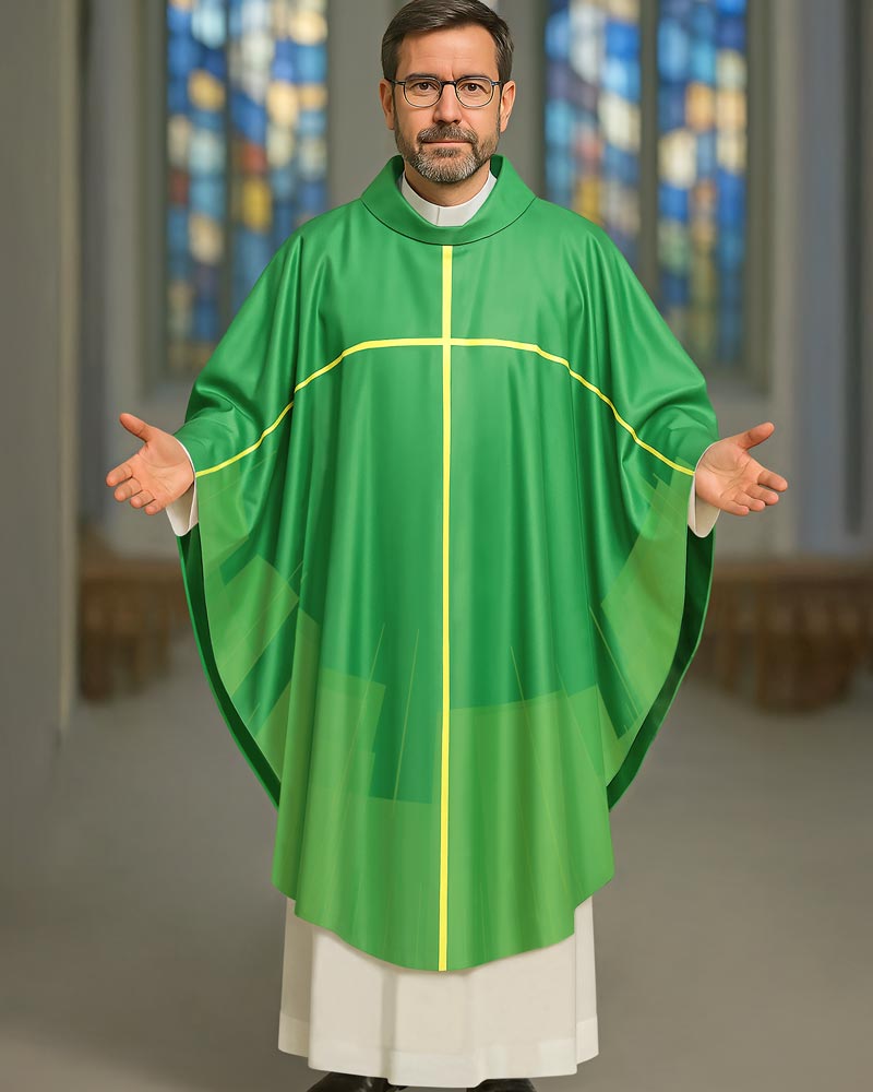 Kasel grün 130 x 145 cm mit Kreuz Ornamentik