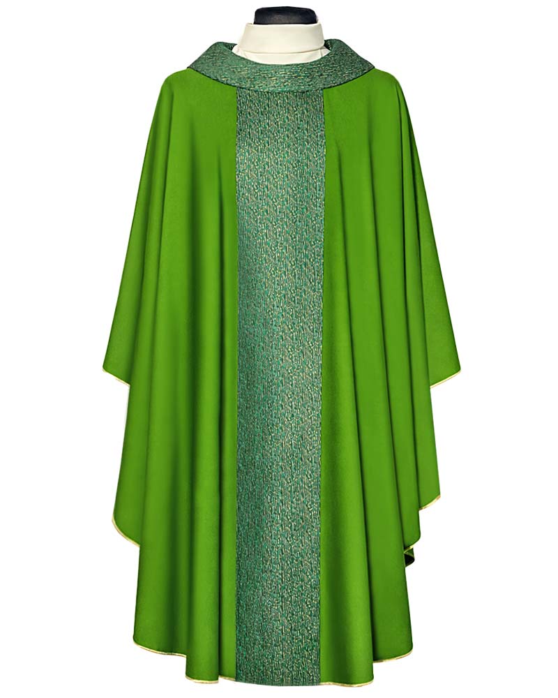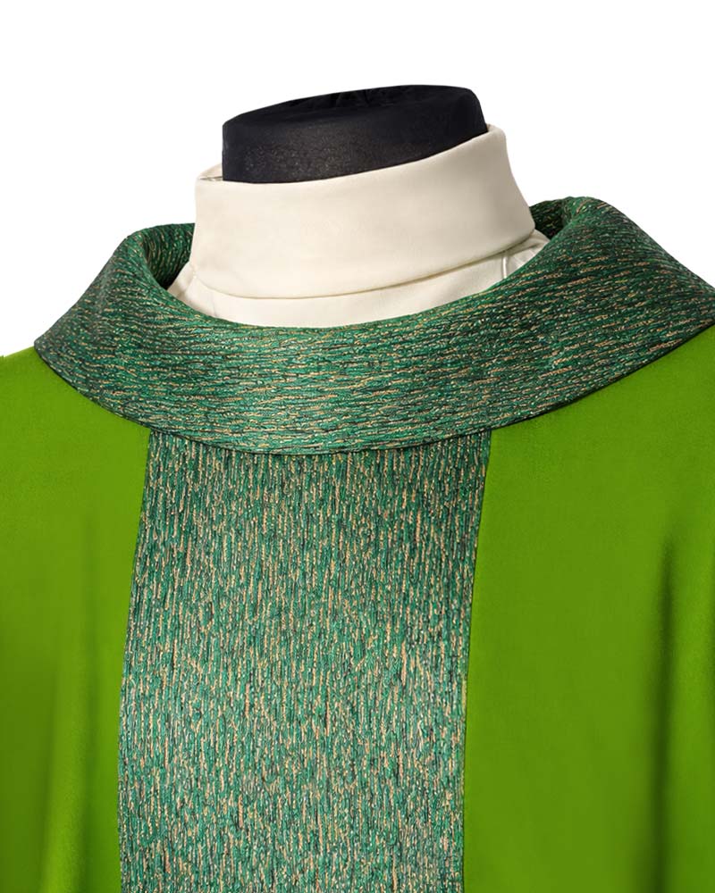 Preview: Kasel grün 132x170 cm mit Rundkragen mit Mittelstab