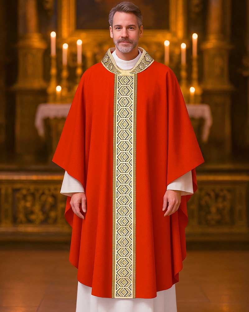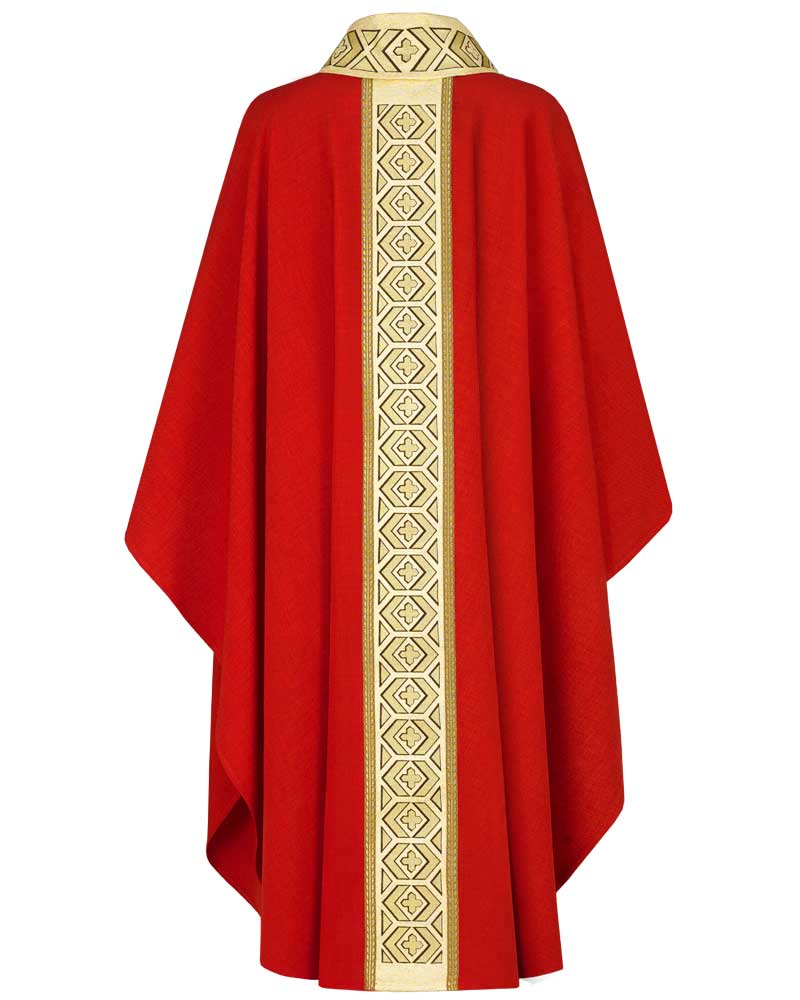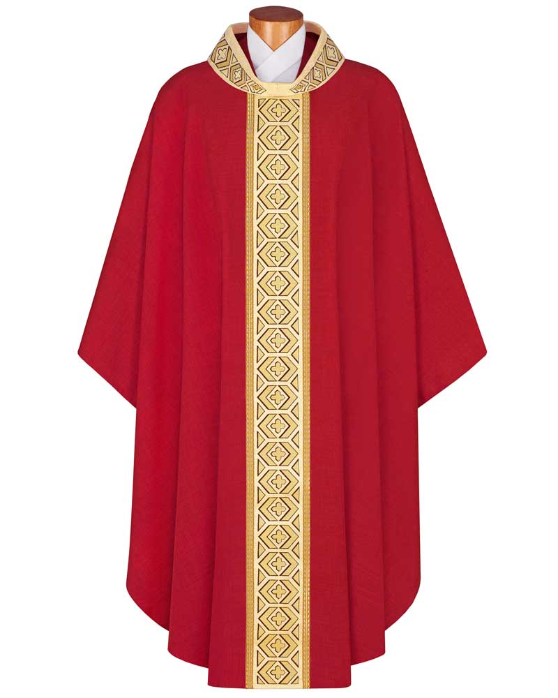 Kasel rot mit Kragen, 125 cm lang, 154 cm breit