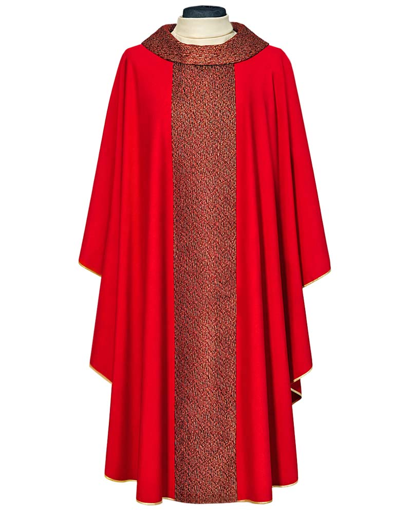 Kasel rot mit Rundkragen 132 x 170 cm mit Mittelstab