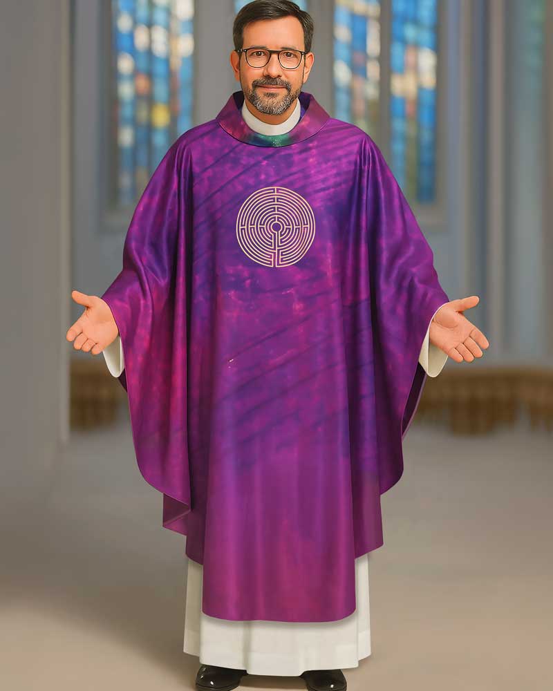Kasel violett "Labyrinth" 138 x 155 cm Seidensatin