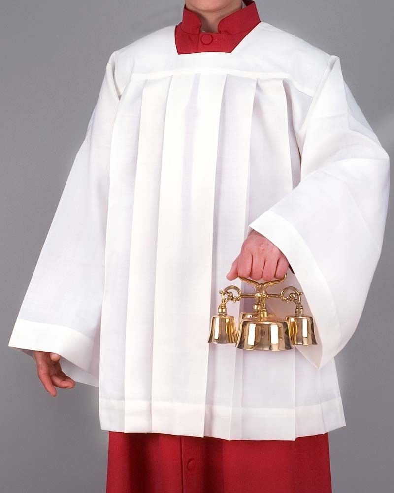 Chorhemden für Minstranten, aus weißem Paramentenstoff in 100 % Baumwolle, mit besonders hohem Tragekomfort. Hochwertige Konfektion mit weitem, eckigem Halsausschnitt und angereihten Falten, in bequemer Passform, zeitlos und schön. Lieferbar in 4 verschiedenen Längen von 70 bis 100 cm, zu attraktiven Preisen.