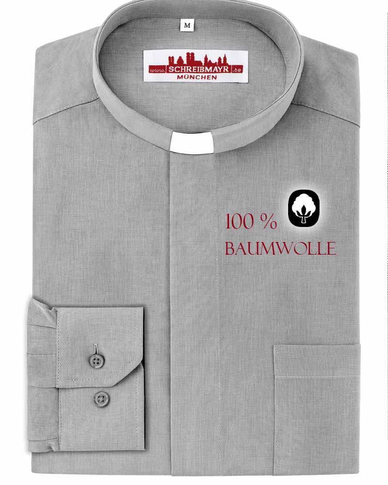 Diese Collarhemden, aus 100 % Baumwolle, mit langem Arm und Einsteckcollar, erhalten Sie exclusiv nur bei SCHREIBMAYR. Durch die Verarbeitung aus natürlichem Gewebe, sind die Hemden angenehm und leicht zu Tragen. Die Priesterhemden sind bequem geschnitten, mit paspelierter Brusttasche und verdeckter Knopfleiste ausgeführt. Waschbar bei 40 Grad und bügelleicht.