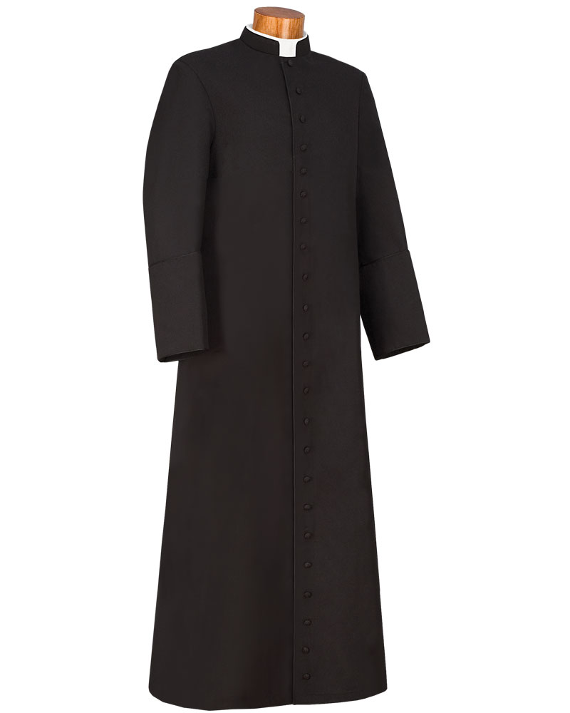 Priestersoutane aus strapazierfähiger und knitterarmer 100 % Schurwolle. Die verdeckte Knopfleiste ist mit 33 stoffbespannten Knöpfen verziert. Konfektion mit Tascheneingriff, Innentasche, Saumabschluss mit Paspelierung und Biesenfranse. Klassischer, römischer Kragen. Das Zingulum ist im Preis nicht enthalten.