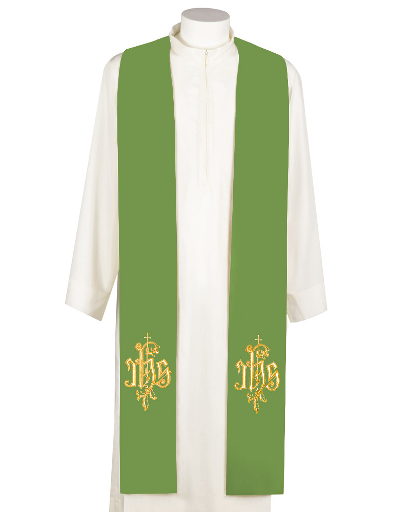 Priesterstola grün gesticktes IHS Symbol in Goldfarbe