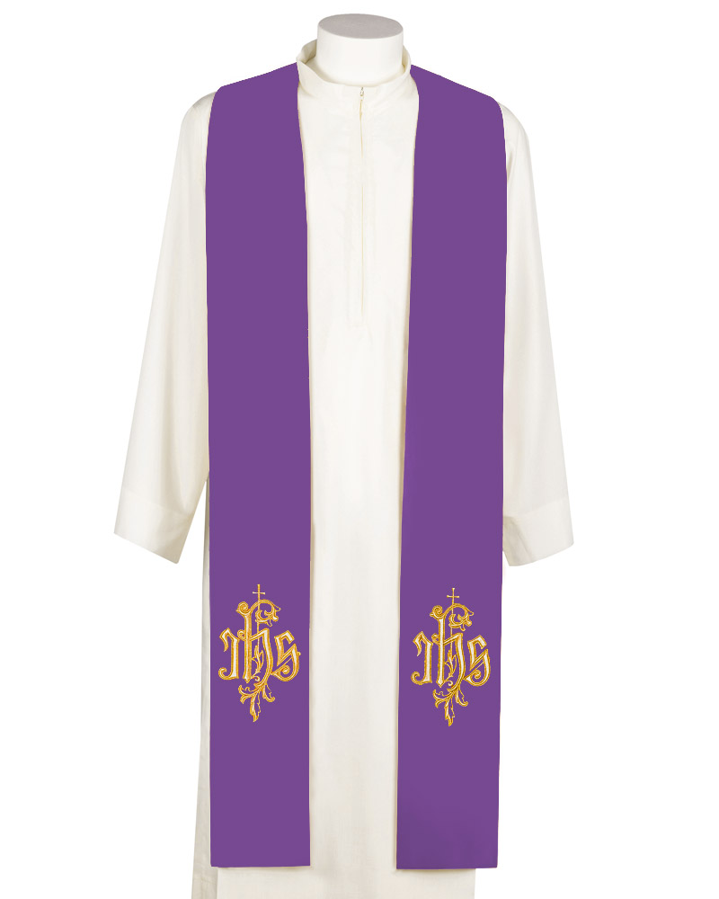 Priesterstola violett gesticktes IHS Symbol in Goldfarbe