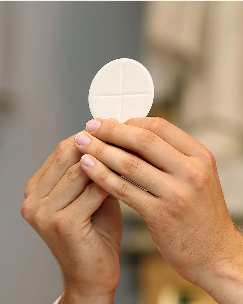 Die Riten und Zeremonie für die Feier der Heiligen Eucharistie, sind durch kirchliche Gesetzte geregelt. Nach dem Codex des kanonischen Kirchenrechtes CIC924 müssen die Hostien aus frischem Weizenmehl unter Zugabe von ein wenig Wasser zubereitet werden.