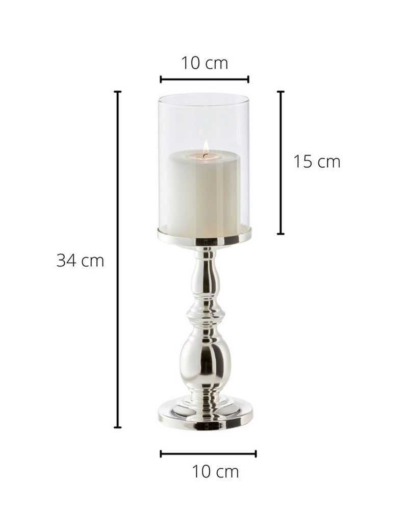Dieser stilvolle Kerzenleuchter überzeugt mit seiner geschwungenen Form und einer Höhe von 34 cm. Gefertigt aus hochwertigem, versilbertem Stahl, bietet er eine glänzende Oberfläche, die edel und zeitlos wirkt. Das Design kombiniert Eleganz und Stabilität, wodurch der Leuchter ideal für den Einsatz auf Altären, in Kapellen oder als dekoratives Element geeignet ist. Seine robuste Konstruktion sorgt für sicheren Halt, während die geschwungene Form einen harmonischen Blickfang bietet. Perfekt für Kerzen unterschiedlicher Größen.