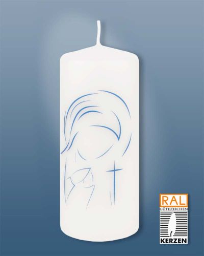 Die Gestaltung zeigt klassische Motive wie die Maria mit dem Jesuskind, das AVE MARIA-Emblem oder Lilien als Symbol der Reinheit. Typische Farben wie Weiß und Blau stehen dabei für die Himmelsfarben und verleihen der Kerze eine besonders würdige Symbolkraft.