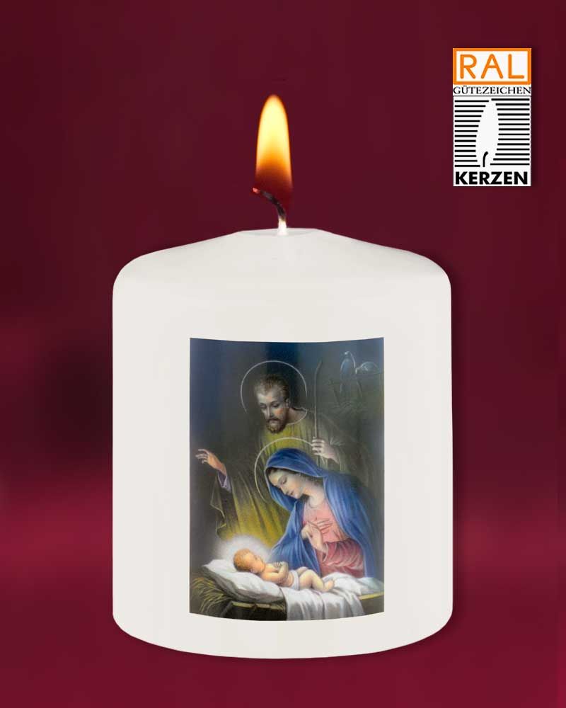 Weihnachtskerze 60x50 mm weiß Motiv Christi Geburt