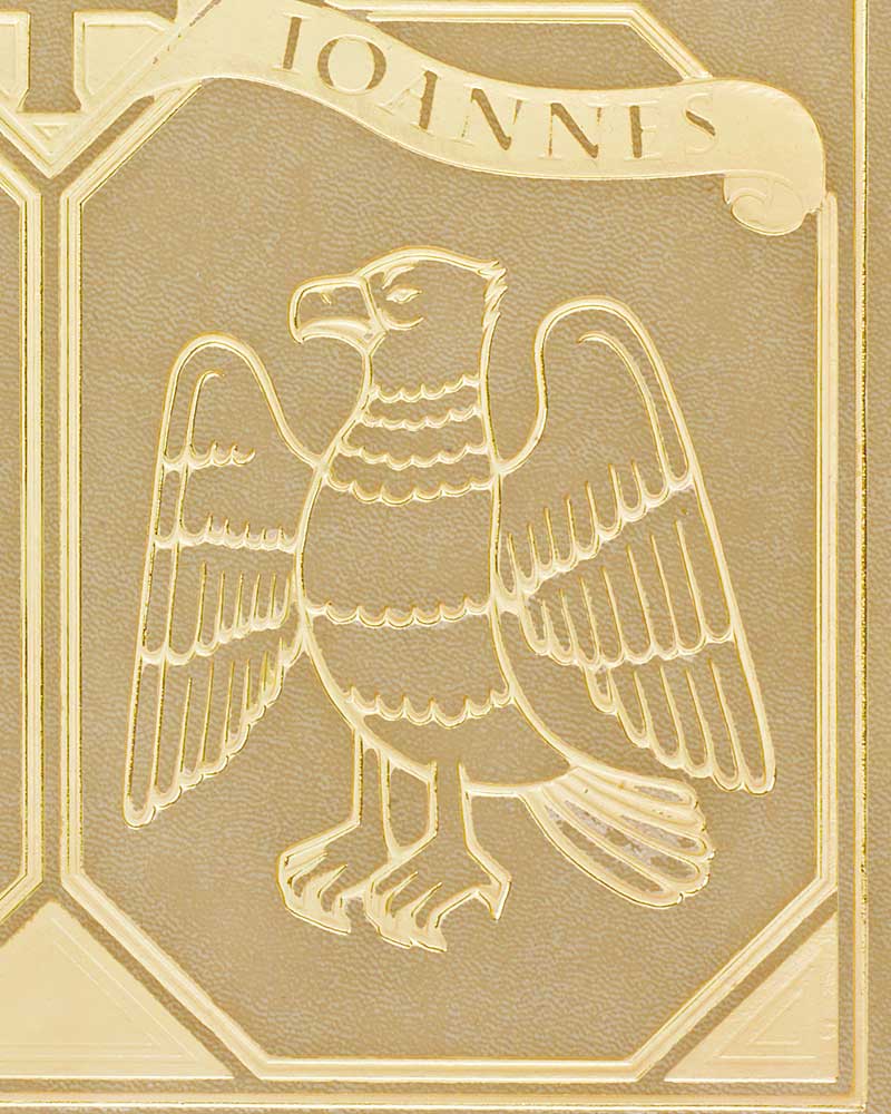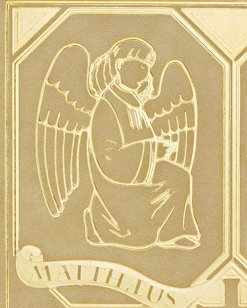 Evangeliareinband aus hochwertigem beigem Leder mit detailreicher Goldprägung der vier Evangelisten. Der Buchdeckel ist passgenau gefertigt für die Evangeliarausgabe 2022 und misst 24 x 33,5 cm. Die Prägung symbolisiert die vier Evangelisten Matthäus, Markus, Lukas und Johannes nach der traditionellen Ikonografie. Der feste Einband schützt das liturgische Buch im täglichen Gebrauch und verleiht ihm eine würdevolle Ausstrahlung für den Einsatz im Gottesdienst. Die exakte Verarbeitung sorgt für eine sichere Handhabung und eine lange Lebensdauer. Ideal für Kirchenbedarf, Liturgiezubehör und Ausstattung des Altars.